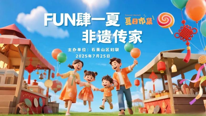 夏日炎炎,童趣飞扬!为让孩子们在欢声笑语中感受传统文化魅力,在亲子互动中收获成长乐趣,度过一个充实而有意义的假期,石景山区妇联将举办“FUN肆一夏·非遗传家”夏日市集活动,超多特色体验项目等你来挑战!